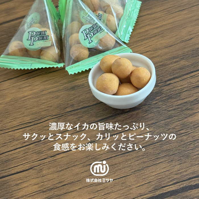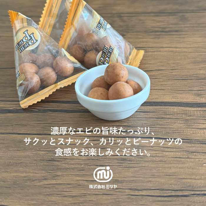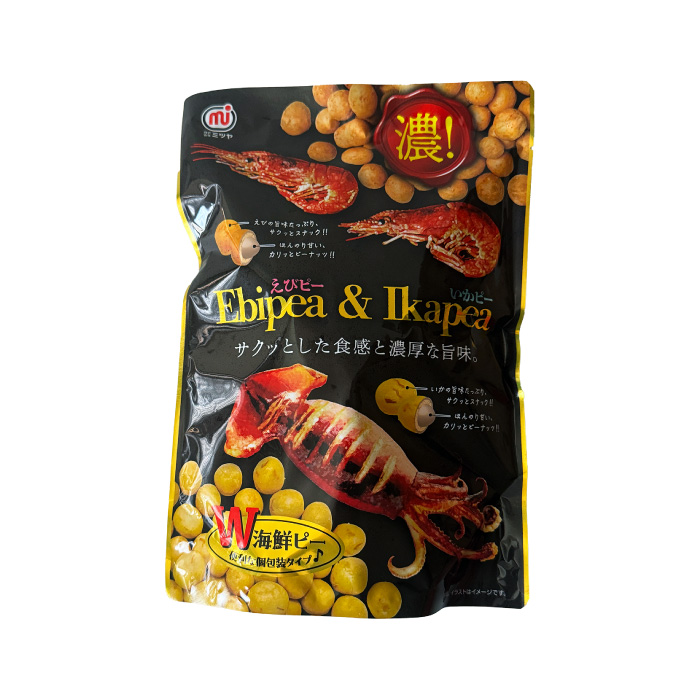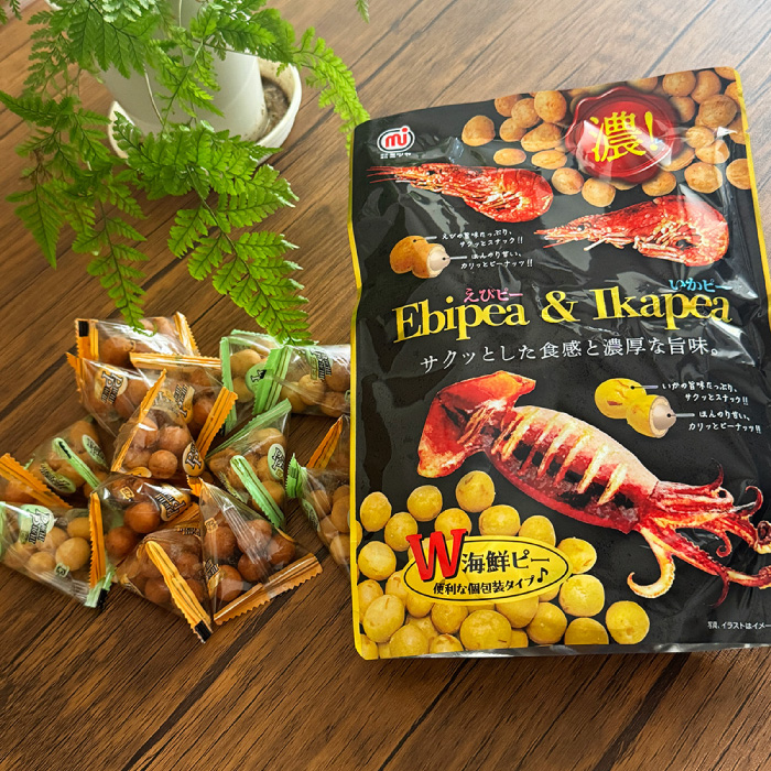 | 原材料 | ●えびピー:落花生(アメリカ)、小麦粉、砂糖、澱粉、寒梅粉ミックス(澱粉、米粉)、植物油、エビシーズニング、還元水あめ、エビ粉、蛋白加水分解物、食塩/膨脹剤、調味料(アミノ酸等)、着色料(紅麹)、(一部にえび・小麦・落花生を含む) ●いかピー:落花生(アメリカ)、小麦粉、砂糖、澱粉、寒梅粉ミックス(澱粉、米粉)、植物油、イカシーズニング、還元水あめ、蛋白加水分解物、切りイカ、食塩/調味料(アミノ酸等)、膨脹剤、加工澱粉、(一部に小麦・落花生・いか・大豆を含む) |