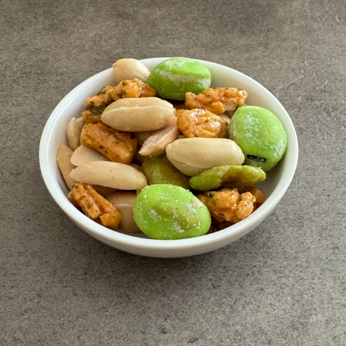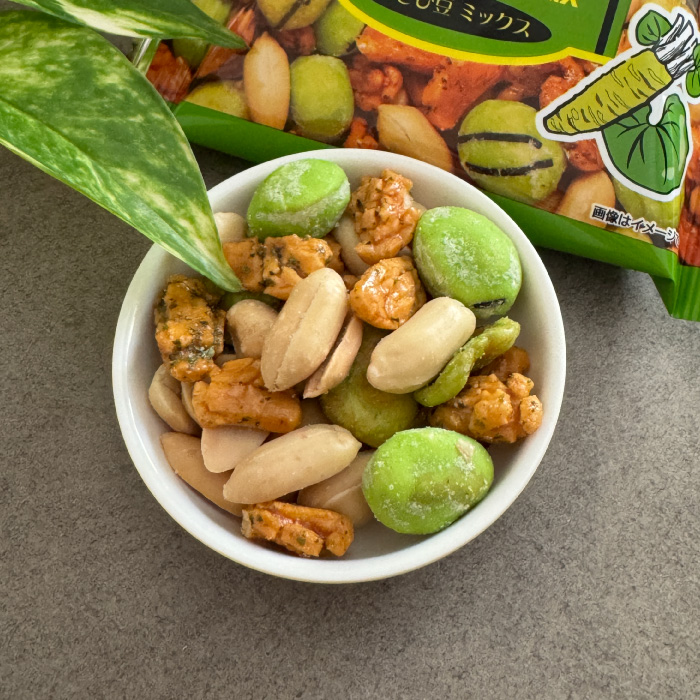 わさびのツンとした刺激が絶妙なアクセント。香ばしいナッツとカリッと揚げた豆菓子が口の中に混ざり合い、ビールの苦みと相性抜群!ちょっとしたリラックスタイムや家飲みのスパイスに最適です。